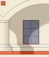 Notice the shadows constucted manually of the building materials on the printed size blowup below.